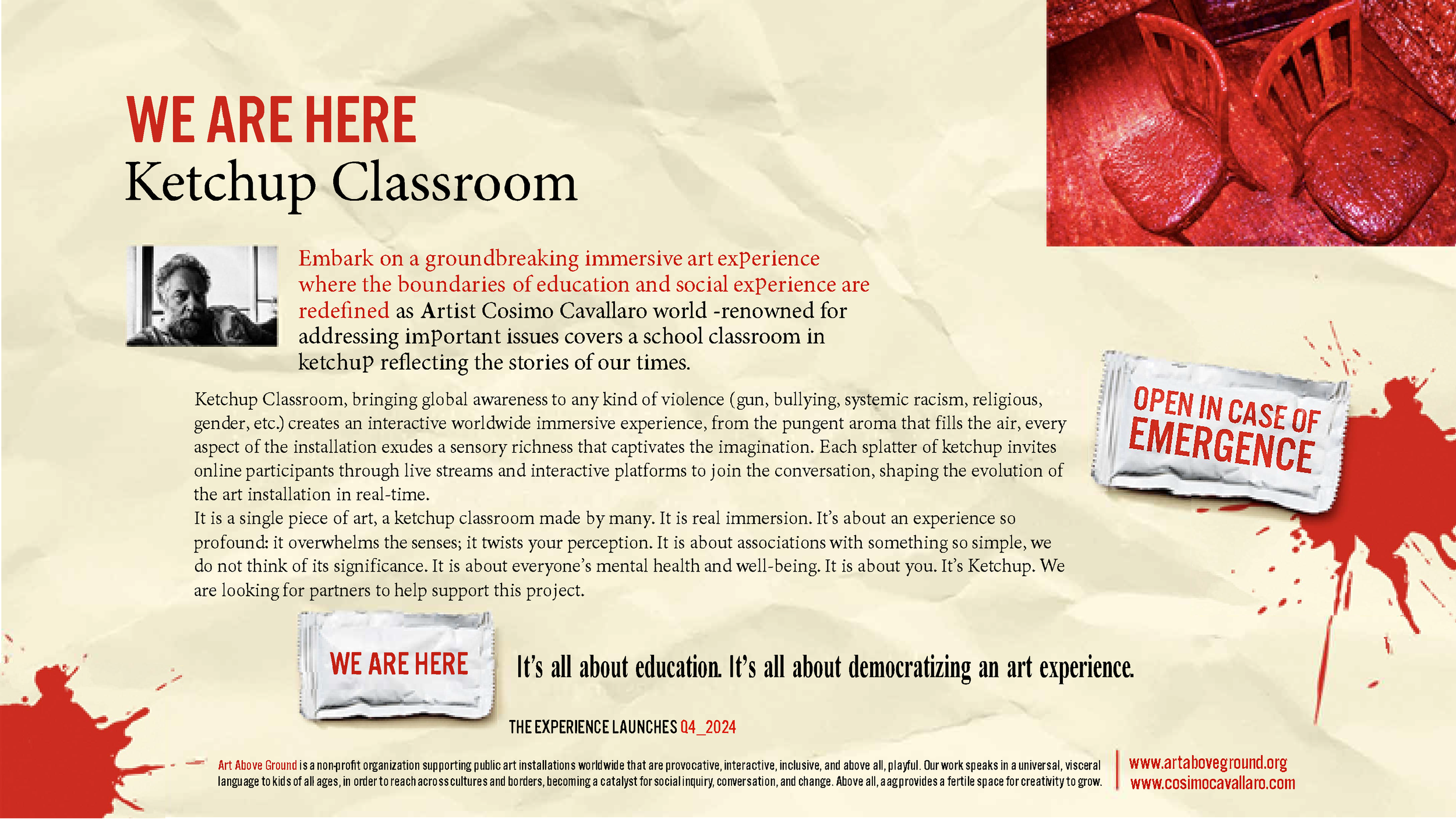 We are a non-profit 501(c)(3) organization producing public art Installations that are provocative, interactive, inclusive, and above all, playful. our work speaks in a universal, visceral language to kids of all ages, in order to reach across cultures and borders, becoming a catalyst for social inquiry, conversation, and change.